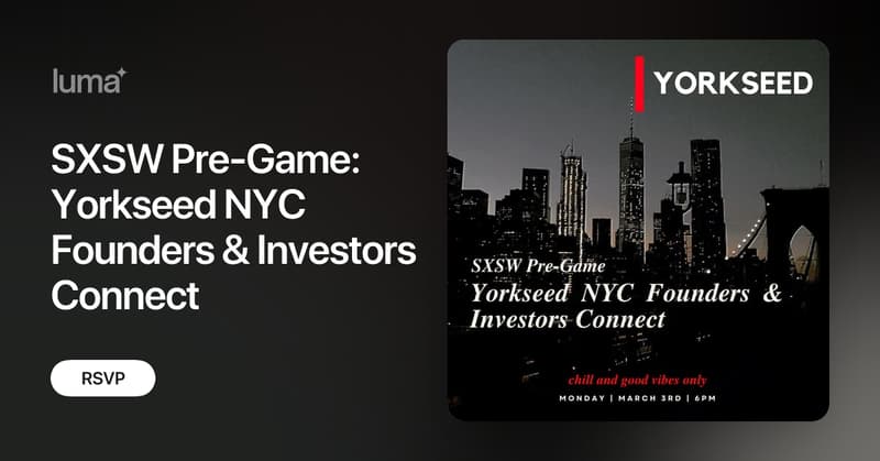 Get ready to connect, collaborate, and kick off SXSW in style! Join Yorkseed for an exclusive evening bringing together NYC’s brightest founders, savvy investors, and startup enthusiasts. Whether you’re preparing for Austin or looking to spark new opportunities right here in the city, this is your chance to build meaningful connections in a relaxed and vibrant setting.