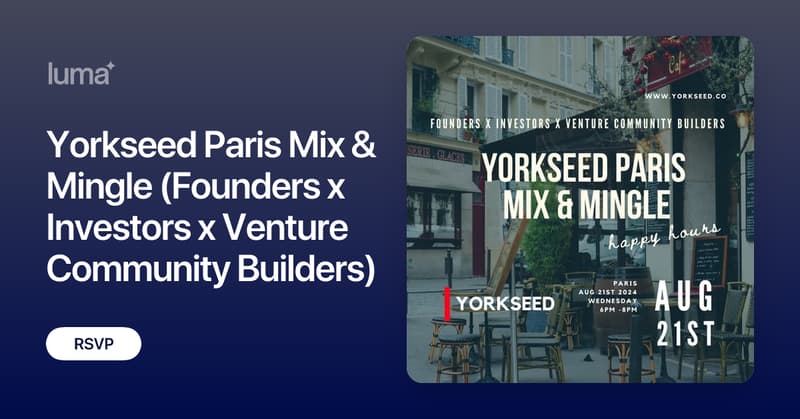 Join Yorkseed Paris hub Venture Capital Community for Founders + Investors (Approval Required): https://chat.whatsapp.com/KaJZXWHuLHT9SUfW4K7b6m