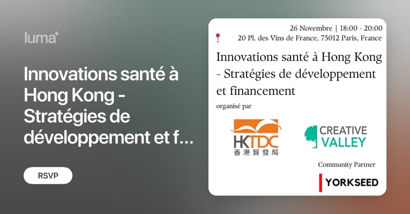 Vous êtes intéressé(e) par l'innovation en santé et les opportunités de croissance à l'international ? Rejoignez-nous le 26 novembre de 18h à 20h à Station F pour un afterwork inspirant!