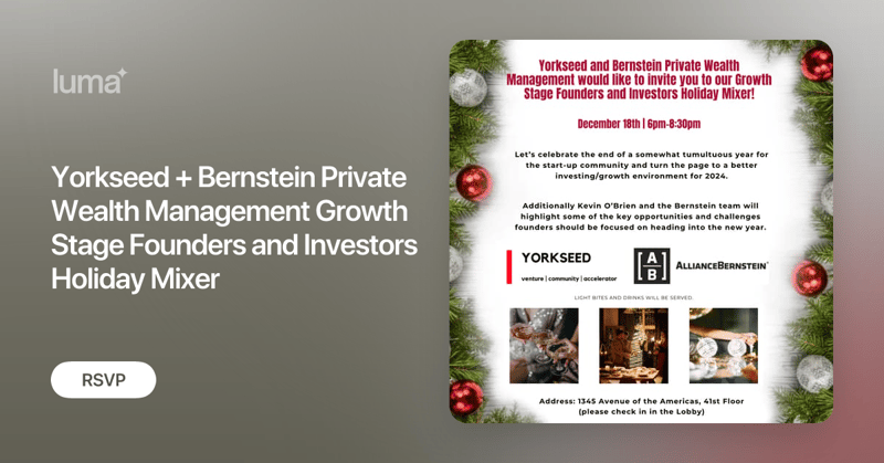RSVP: Yorkseed™ and Bernstein Private Wealth Management would like to invite you to apply to attend our Growth Stage Founders and Investors Holiday Mixer!