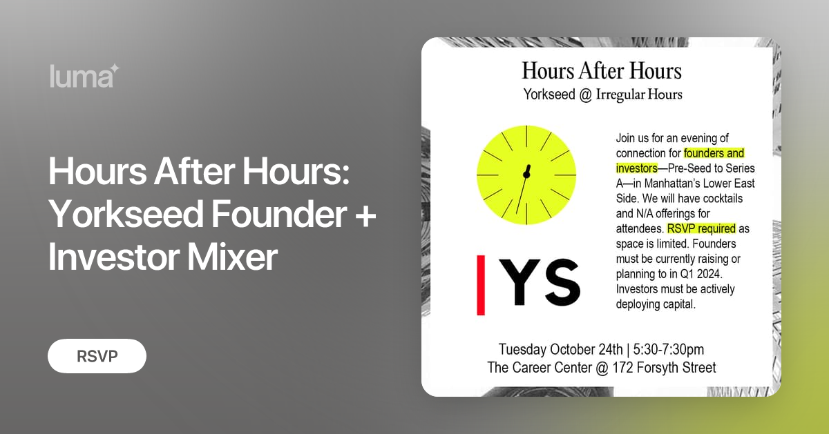 Join Yorkseed NYC hub Venture Capital Community for Founders + Investors on WhatsApp: https://chat.whatsapp.com/GLZ2e6nJOMo4BIDeUsDLnb