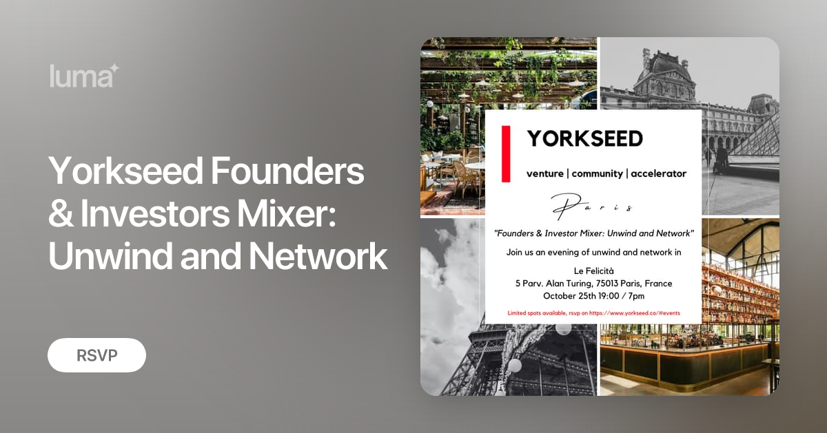 Join Yorkseed Paris hub Venture Capital Community for Founders + Investors on WhatsApp: https://chat.whatsapp.com/KaJZXWHuLHT9SUfW4K7b6m