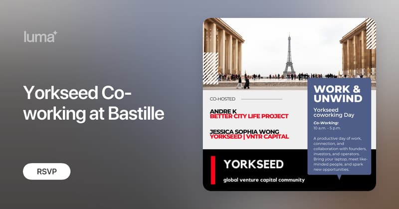 Access to our local hubs is restricted to founders, investors, executives, or individuals actively involved in the local tech innovation sector or frequently visiting the local city for work. Interested to become a Yorkseeder ? Join your local city hubs today! (Approval required) Paris, New York City, Austin | San Antonio, Chicago, Miami, D.C., Los Angeles, Bay Area, Hong Kong, Lisbon, Sydney, Munich, Berlin, Helsinki, London, Singapore, São Paulo, Buenos Aires | Rio, Toronto, Montreal, Tel Aviv, Dubai, Amsterdam, Dublin, Zurich, Milan, Global Hub (International)